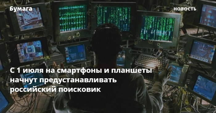 С 1 июля 2021 года производители гаджетов должны будут по умолчанию предустанавливать в браузеры смартфонов и планшетов отечественную поисковую систему, сообщает ТАСС со ссылкой на Минцифры. О каком именно поисковике идет речь, пока неизвестно, но «Коммерсантъ» со ссылкой на мнение участников рынка пишет, что это будет «Яндекс».