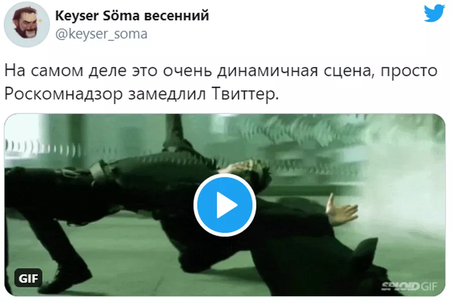 Чтобы защитить россиян от «влияния противоправного контента», Роскомнадзор на прошлой неделе замедлил Твиттер, но полегло всё, кроме него: Russia Today, Microsoft, Reddit, Github и даже сайты Кремля и Госдумы. Пользователи же Твиттера, хоть и жалуются на долгую загрузку фото и видео, спокойно продолжают общаться и шутить над ведомством и его попыткой вмешаться в работу сервиса. Видя, что замедление не работает, замглавы Роскомнадзора даже пригрозил заблокировать соцсеть, если та не удалит «запрещенную информацию»: посты-склонения к самоубийству, употреблению наркотиков, экстремизму.