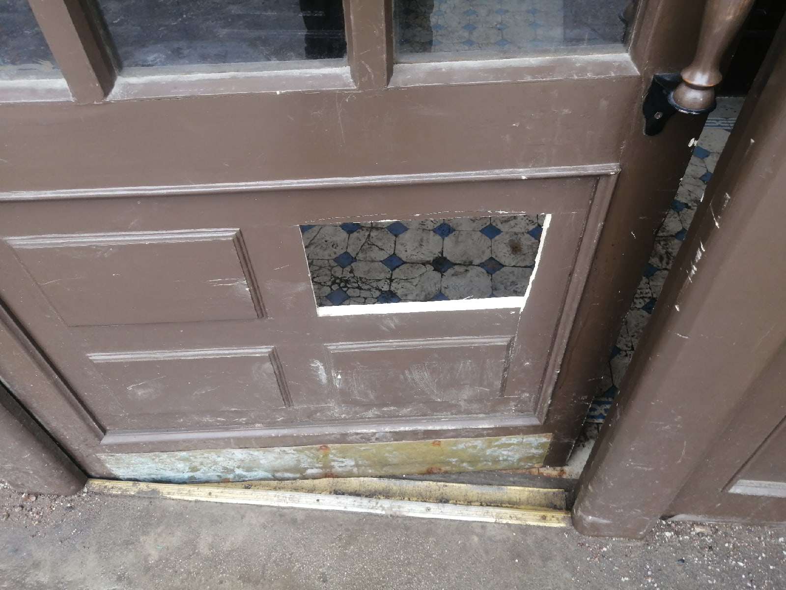 Инцидент произошел в ночь на 13 марта. Мужчина и женщина хотели попасть в закрытую парадную, пытаясь «взять дверь с разбега». Замок остался на месте, однако нижнюю фрамугу они выбили.