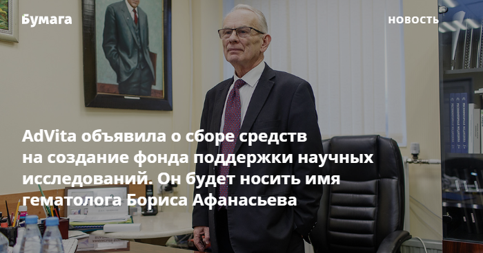 Благотворительный фонд AdVita объявил о сборе средств на создание фонда поддержки научных исследований имени гематолога Бориса Афанасьева, который умер 16 марта 2020 года. Об этом «Бумаге» рассказали в пресс-службе организации.