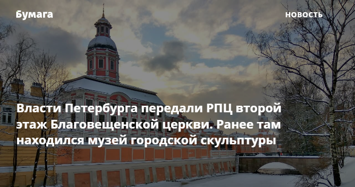 Власти Петербурга передали РПЦ второй этаж Благовещенской церкви