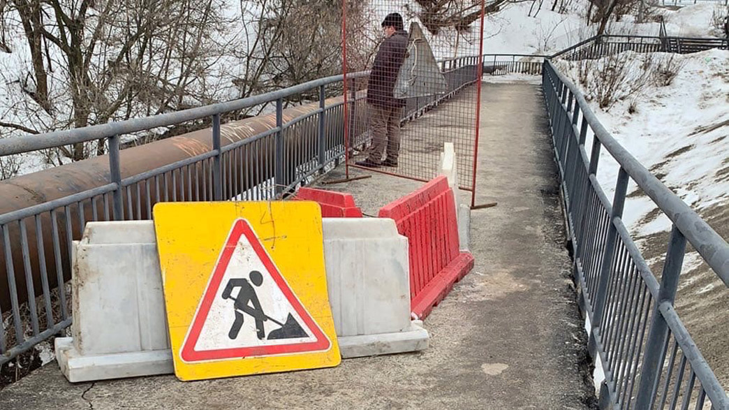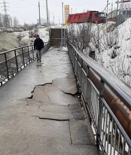Во Владимире в микрорайоне Веризино на пешеходном мосту образовался провал. Сейчас опасное место огородили.