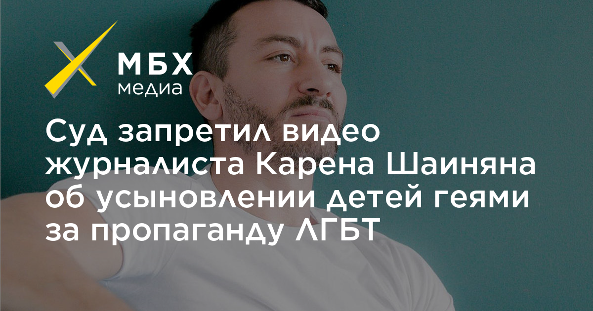Останкинский суд Москвы запретил к распространению в России выпуск блога журналиста Карена Шаиняна «Усыновление геями: такую Россию вы выберете?» за пропаганду нетрадиционных сексуальных отношений. Мотивированное решение «МБХ медиа» обнаружило в картотеке суда.