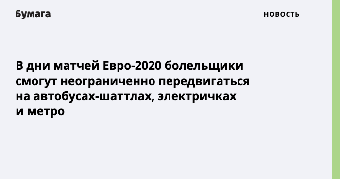Как указано в проекте, болельщики в дни проведения матчей смогут неограниченно передвигаться на автобусах-шаттлах, которые будут курсировать во время чемпионата Европы. Кроме того, фанатам будут доступны трамваи № 19 и № 48, проезд в метро и все маршруты железнодорожного транспорта в пригородах Петербурга и Ленобласти. Для этого им необходимо будет иметь при себе паспорт болельщика и билет на матч.