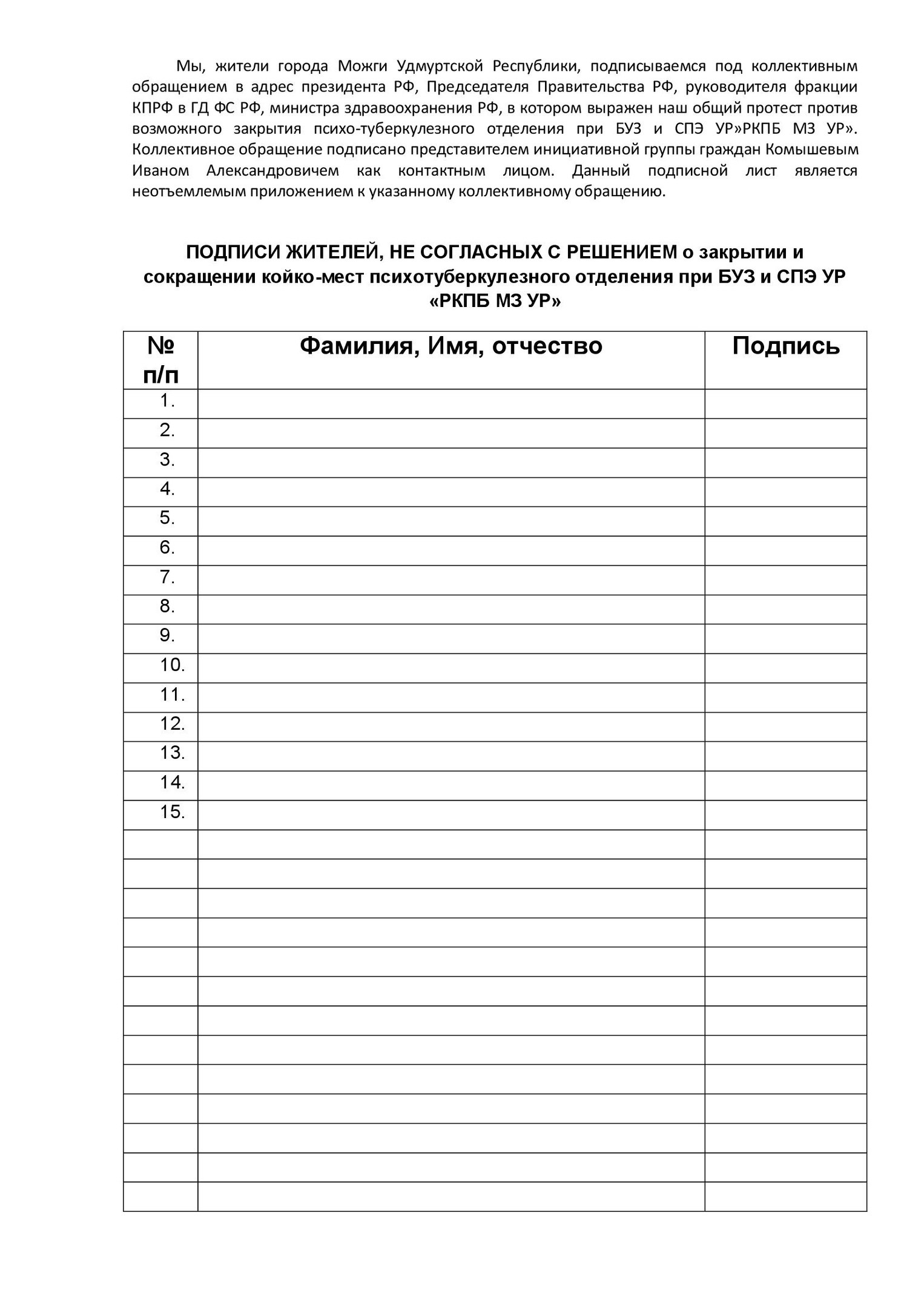 В сегодняшних условиях, когда в Удмуртии запущен маховик оптимизации в сфере здравоохранения, только объединение пациентского сообщества и медиков, а также создание по-настоящему независимых профсоюзов и пациентских организаций способно противостоять действиям чиновников.