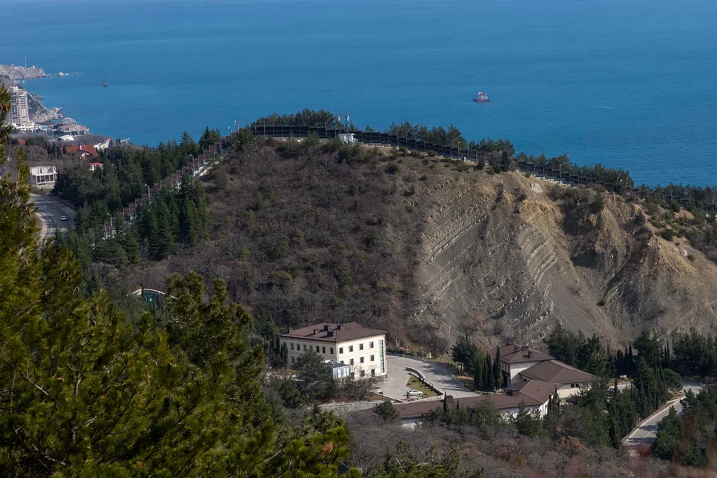 Усиленная охрана леса над Оливой понятна: отсюда открывается прекрасный вид на госдачи. В резиденции Владимира Путина достраивается ледовый дворец. На одном из зданий очень много спутниковых тарелок. Стоят вышки связи, глушилки. Местные говорят, что кабинет президента в Оливе ничем не отличается от того, что находится в Ново-Огареве. По их словам, Владимир Путин прибывает на крымскую дачу не только на автомобиле или вертолете, но и на яхте. Во время его визита по побережью треугольником выстраиваются военные корабли.