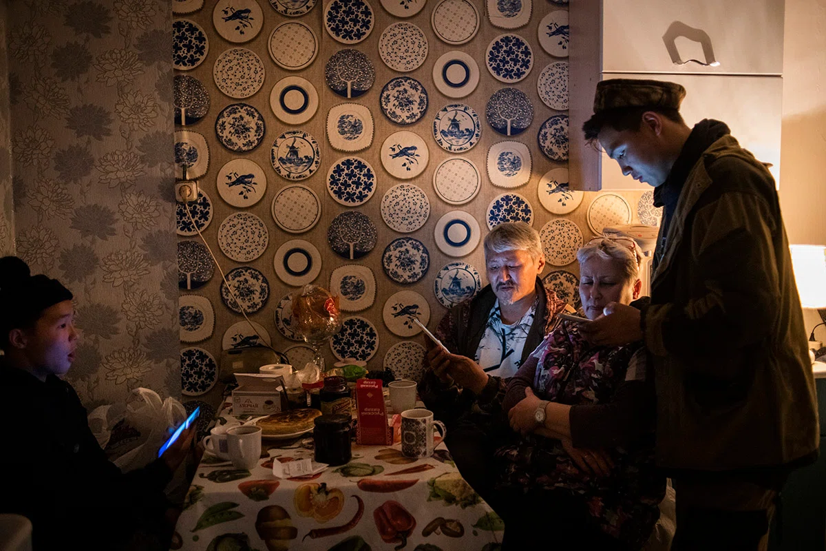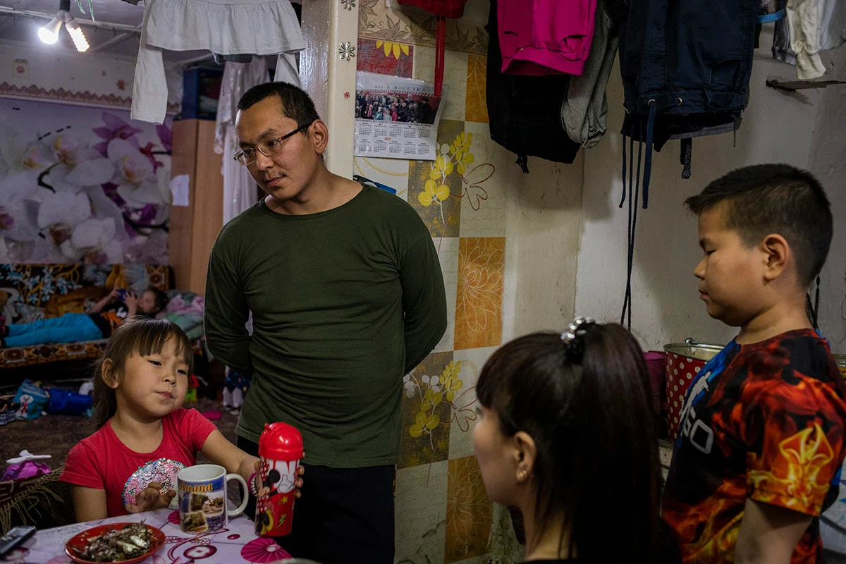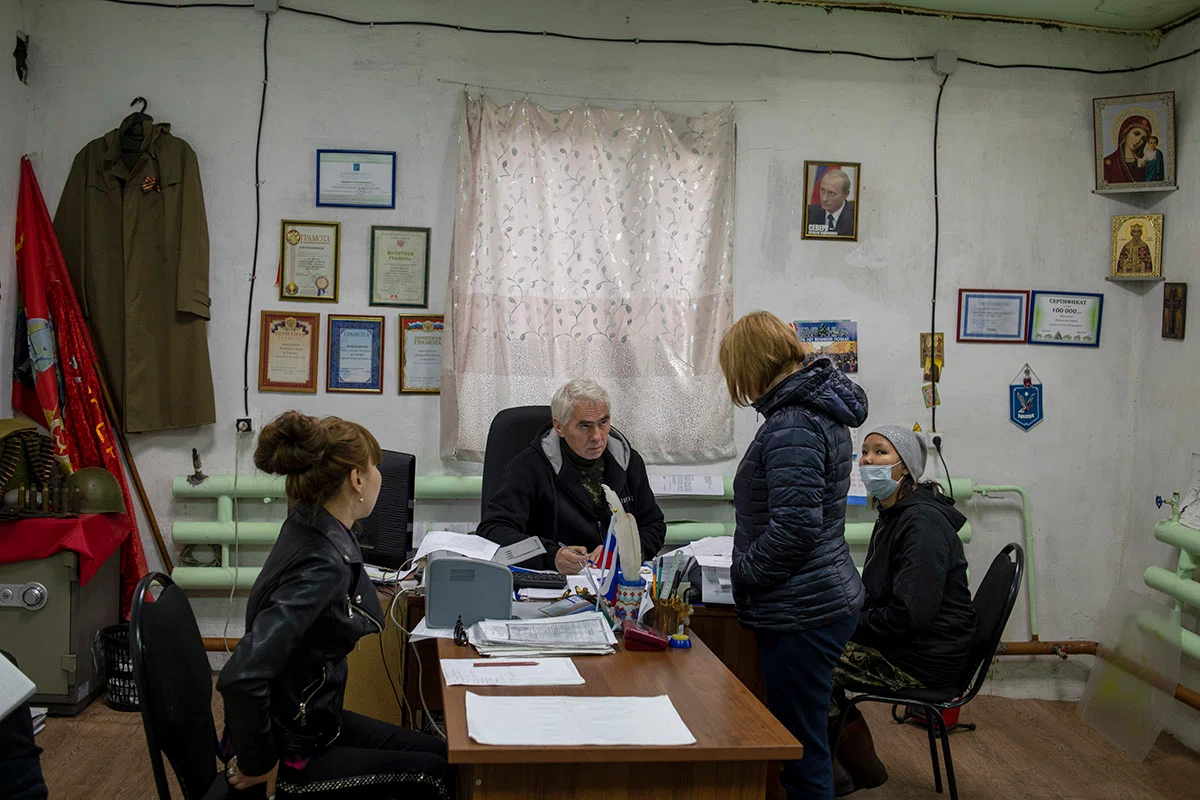Мэра зовут Сергей Михайлович Набережнев. Русский, седой, с ног до головы в камуфляже, на Таймыре 37 лет. Раньше он был здесь участковым — «когда еще вокруг поселка стояли чумы». Говорит, что в мэры его «призвали». «Путин же не отказывается от поставленных задач. Вот и я не отказался».