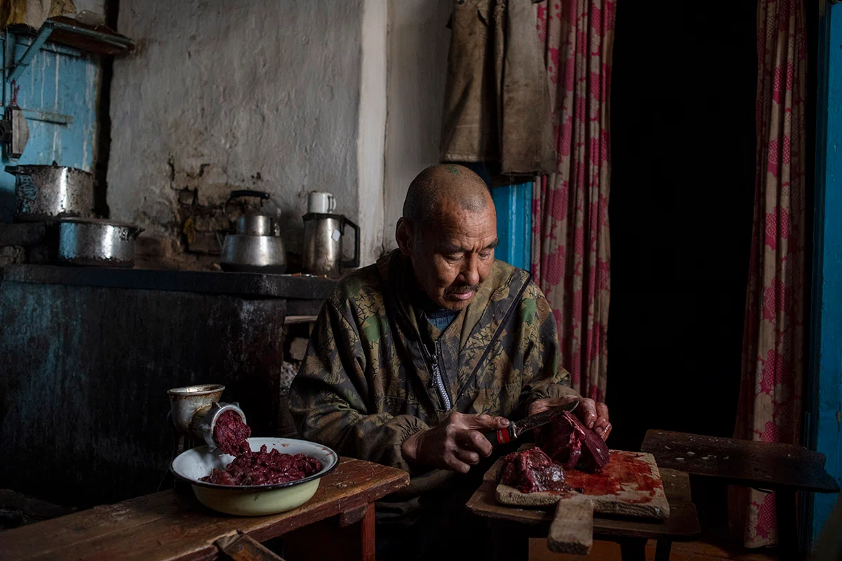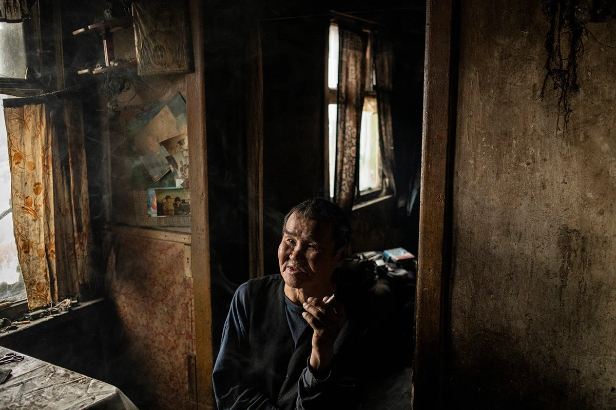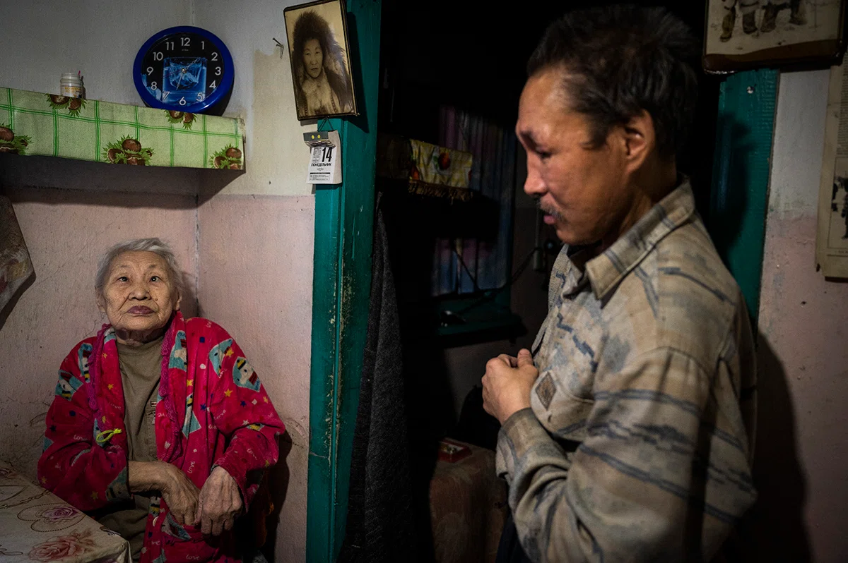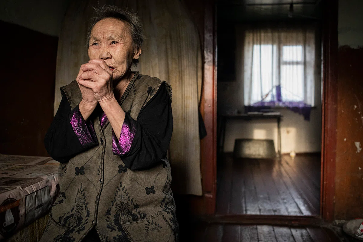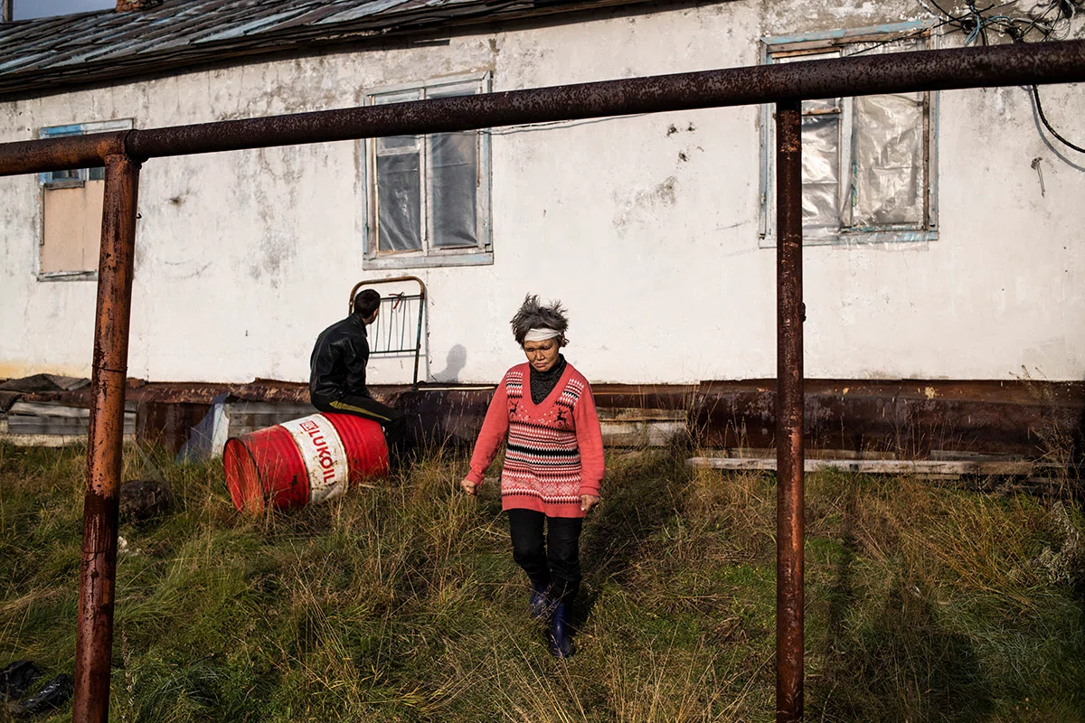 Она живет совершенно одна. Топит печь раз в три дня, кормит мохнатых собак каждое утро. Просилась в Дудинку в дом престарелых, но там ей отказали — «состарься побольше».