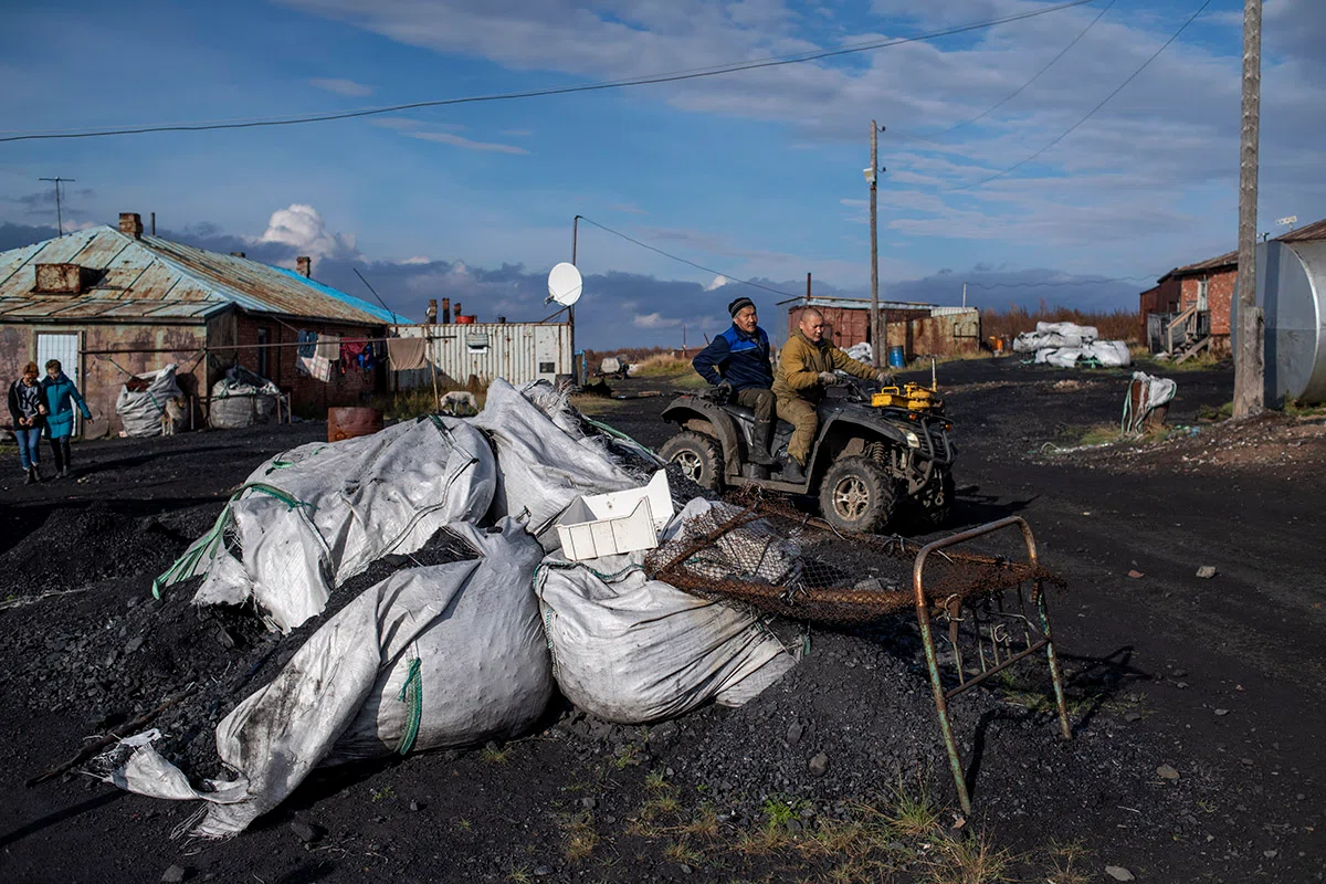 Еще Усть-Авам — это мешки с углем. Гигантские белые, навалены грудами у каждого крыльца. Власть раздает по 10 тонн на семью, чтоб протопиться зимой (зима здесь семь месяцев). Уголь «сеют» — просыпают через панцирные сетки кроватей. Иначе угольная пыль и «мелочь» не даст разгореться огню. Это важно сделать, пока не лег снег. Все улицы усыпаны черным крошевом.