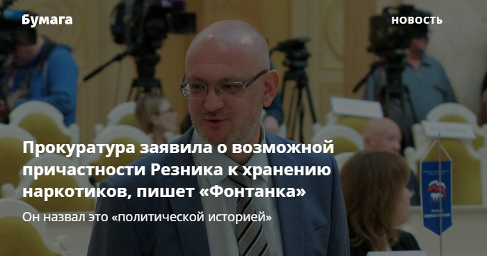 Прокуратура Петербурга направила в Следственный комитет новое уголовное дело о хранении наркотиков, в материалах которого указан оппозиционный депутат Законодательного собрания Максим Резник. Об этом со ссылкой на документ сообщила «Фонтанка».