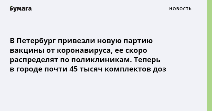 Как пояснили «Бумаге» в комитете по здравоохранению Петербурга, прибывшую партию в первую очередь распределят в те районы, где вакцина уже закончилась. В ближайшее время планируется новая поставка прививок в город.