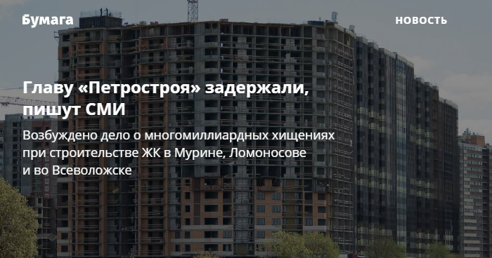 Главу «Петростроя» задержали, пишут СМИ
