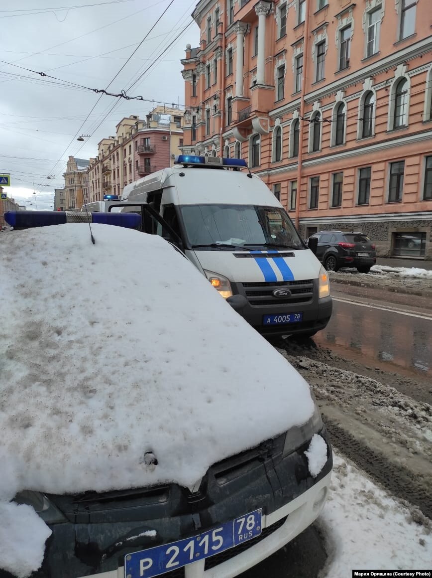 Полиция приехала в "Этажи" по сообщению администрации пространства. Задержанных доставляют в 76 отдел полиции. Кроме Орищиной несовершеннолетних сопровождает отец еще одного из задержанных.