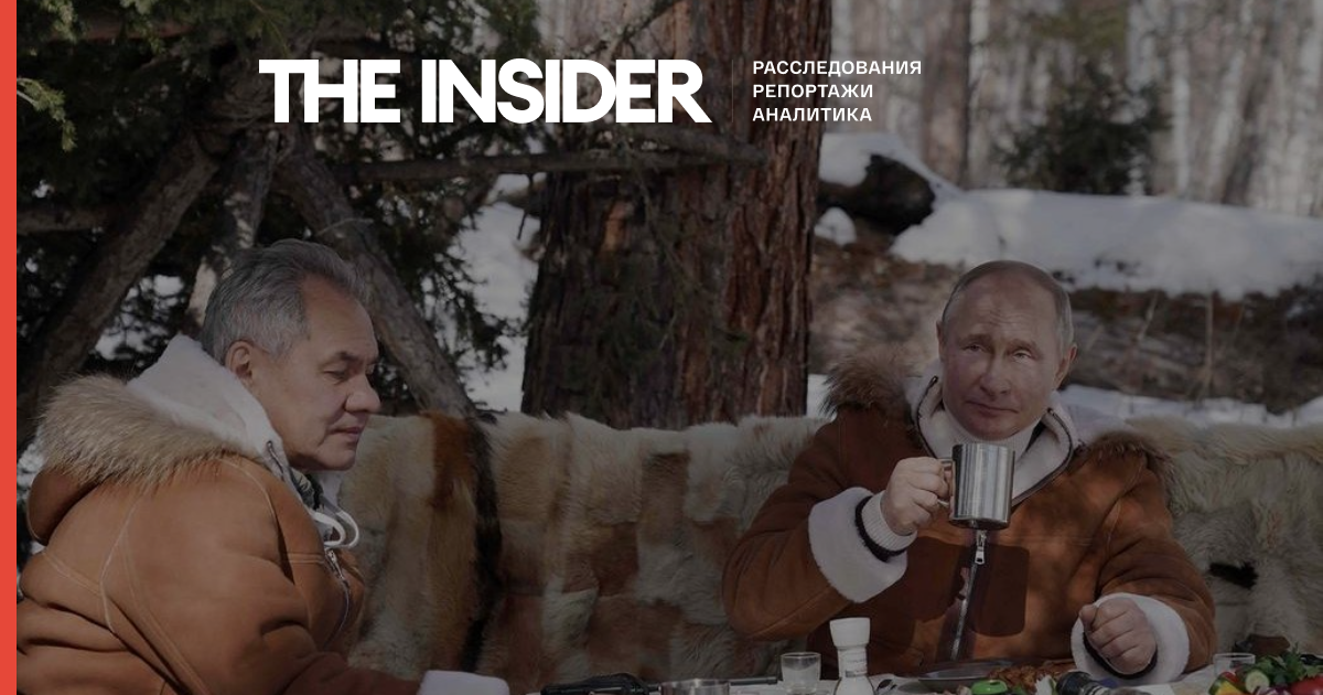 «Президент РФ Владимир Путин в компании главы Минобороны РФ Сергея Шойгу провел выходные в заснеженной тайге. Кадры, распространенные пресс-службой Кремля, запечатлели их пешие прогулки и поездку на вездеходе, а также другие эпизоды отдыха на природе. За руль гусеничного вездехода цвета хаки глава государства сел сам. В поездку на внедорожной технике Путин и Шойгу выехали в костюмах-дубленках и унтах, с которых Путин стряхивал снег перед посадкой за руль. Пробираясь через сугробы, валежник, ручьи и узкие проходы между деревьями, путники делали остановки — в частности, как видно на кадрах, у заброшенного деревянного строения. Шойгу рассказывал Путину об окрестностях, местность ему была знакома. «Хорошо здесь», — отметил президент. Глава государства и министр совершили также пешие прогулки — для них они выбрали зимние куртки потеплее (однако почти на всех кадрах президент и министр — без головных уборов). Путин и Шойгу прогулялись по деревянному подвесному мосту через замерзший водоем, прошлись по склонам холмов, рассматривая пейзажи. Также они разглядывали в бинокль животных вдали. Путин зашел в мастерскую Шойгу для работ по дереву. На столах и верстаках лежали деревянные заготовки, спилы и бруски, столярные инструменты. Отдельно были сложены необработанные корни и ветки необычной формы. Министр показал, как составляет из этого композиции, обратив внимание и на уже готовые — одну из таких работ Шойгу назвал «Снежным барсом», еще одну сравнил с драконом. Путин и Шойгу также беседовали во время приема пищи на свежем воздухе за деревянным столом в тени еловых ветвей, сидя на лавках, устланных шкурами. На скатерти были расставлены тарелки с огурцами, помидорами, квашеной капустой и колбасой, а пили отдыхающие из металлических кружек».