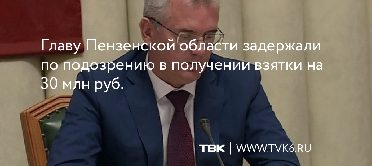 Главу Пензенской области задержали по подозрению в получении взятки на 30 млн руб.