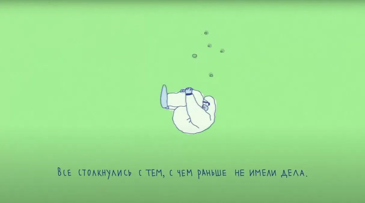 Между прочим, фильмов про карантин сделано немало. Лучший их них — посвящение врачам: «Пандемия» Полины Кампиони. На зеленоватом поле утопающие — миг назад они еще веселились на катере. Доктор из последних сил пытается спасать, вытаскивая то одного, то другого, но люди тонут и тонут.