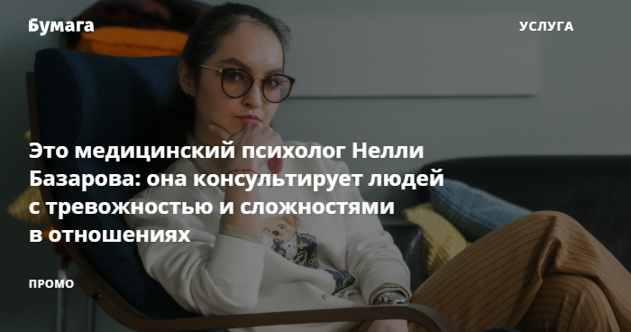 За время пандемии петербуржцы стали чаще обращаться за психологической помощью. Если у вас есть сложности в отношениях или на работе, проблемы с питанием или повышенная тревожность, вы можете обратиться за помощью к медицинскому психологу Нелли Базаровой из Петербурга: «Бумага» рассказывает о ее услугах.