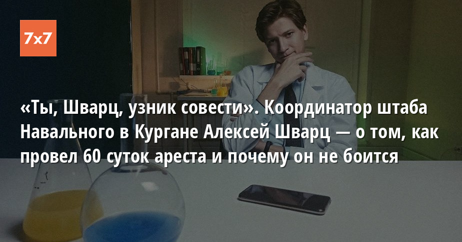 Координатор штаба Алексея Навального в Кургане Алексей Шварц 22 марта освободился после 60 суток ареста. Столько времени в спецприемнике по административным делам не проводил даже сам Навальный. Помимо этого, во время отбывания срока в отношении Шварца возбудили уголовное дело за нарушение тайны переписки (статья 138 УК РФ) из-за публикации разговора курганских чиновников о фальсификации голосования по поправкам к Конституции. В разговоре с корреспондентом «7x7» Алексей Шварц рассказал, как провел 60 суток ареста и почему считает свое дело политически мотивированным.