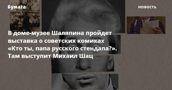 В концертно-выставочном пространстве дома-музея Федора Шаляпина на улице Графтио 2 апреля откроется выставка «Кто ты, папа русского стендапа?», посвященная советским комикам. Она продлится до сентября. Об этом «Бумаге» сообщили представители музея.