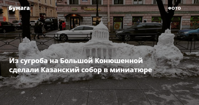 Из сугроба на Большой Конюшенной сделали Казанский собор в миниатюре 🏰