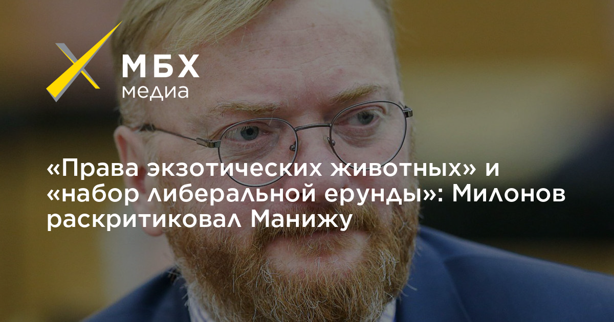 «Права экзотических животных» и «набор либеральной ерунды»: Милонов раскритиковал Манижу