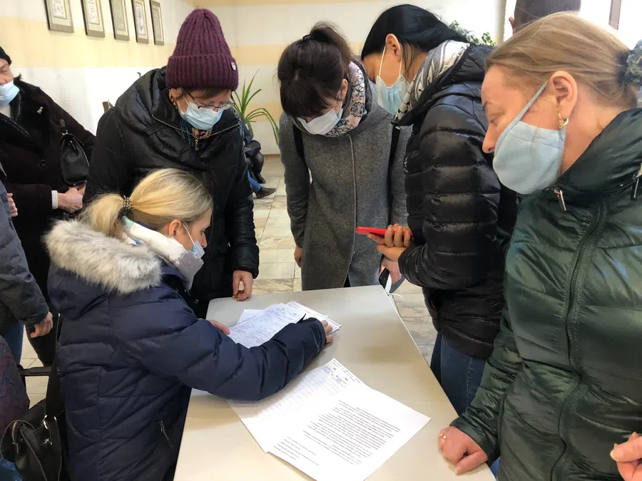 Слушания начинались в 11:00 в Административном городке. Несколько экоактивистов заняли очередь на холоде перед закрытыми дверями еще в шесть утра. Среди первых пришла блогер и общественница Татьяна Корчевная. Вместе с мамой-пенсионеркой и еще несколькими противниками НЗМУ она стала свидетелем того, как около семи утра к зданию «Приморского морского пароходства», где назначили мероприятие, прибыли почти одновременно человек пятьдесят. Когда около 9 утра ворота открылись, около 200 находкинцев прошли на регистрацию и с удивлением обнаружили, что места есть только на 50 человек. И они, эти пятьдесят, уже здесь. Остальные могут «участвовать через онлайн», объяснил мужчина в синем костюме. Но…