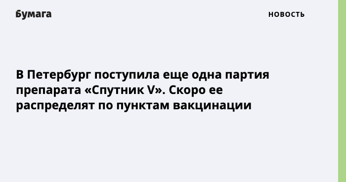 В Петербург поступила еще одна партия препарата «Спутник V»