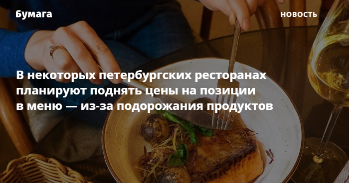 Стоимость блюд в некоторых петербургских ресторанах может увеличиться. Об этом пишет «Деловой Петербург» со ссылкой на учредителя ресторанной группы Tea House Group Владимира Хамзаева и совладельца ресторанов «Русская рыбалка», «Карл и Фридрих» и «Альпенхаус» Михаила Фейгельмана.