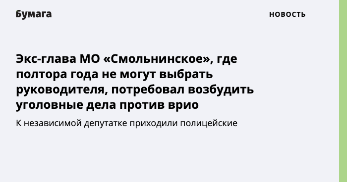 Экс-глава МО «Смольнинское», где уже полтора года не могут выбрать руководителя, потребовал возбудить уголовные дела против врио