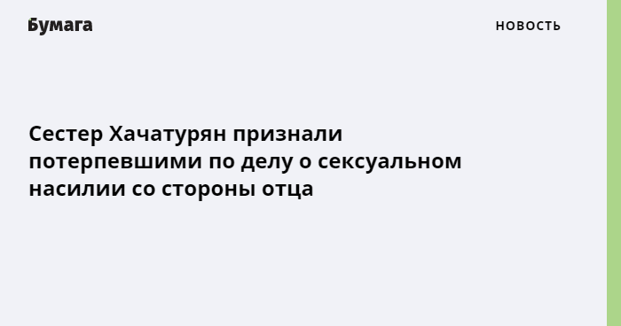 Сестер Марию, Ангелину и Крестину Хачатурян признали потерпевшими по делу о сексуальном насилии, которое возбудили против их отца. Об этом пишет ТАСС со ссылкой на адвоката Ангелины Хачатурян Алексея Паршина.