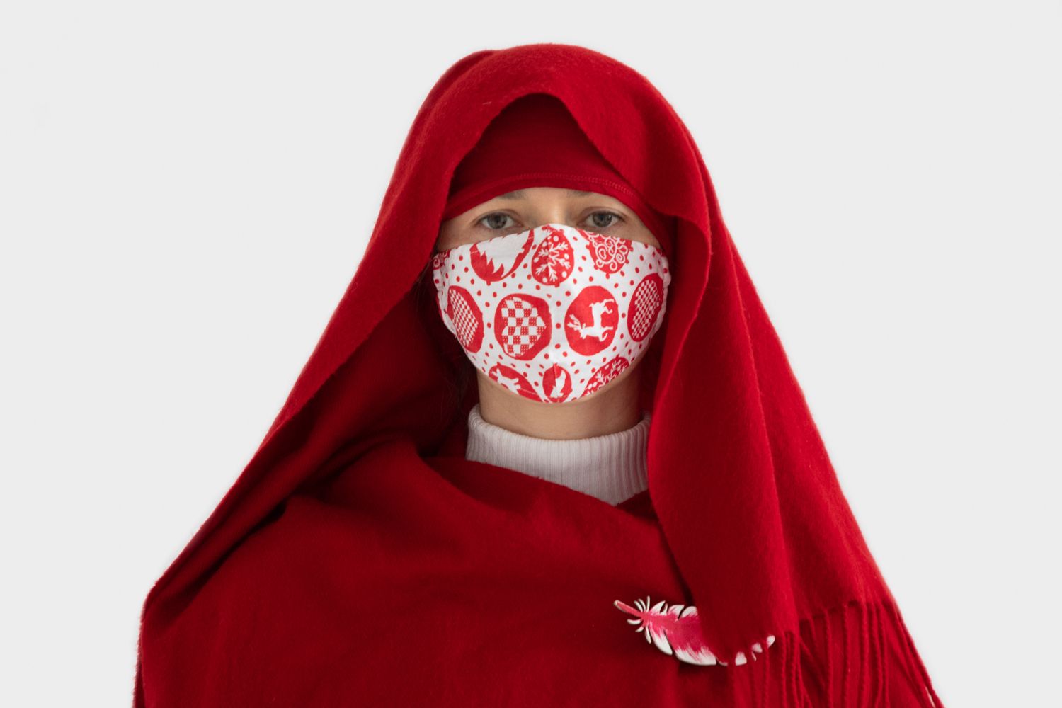 Красный платок — отсылка к женщинам, которые скорбели по погибшим в Речи Посполитой в годы восстания (1863-1864). Они носили черную одежду и красные платки.