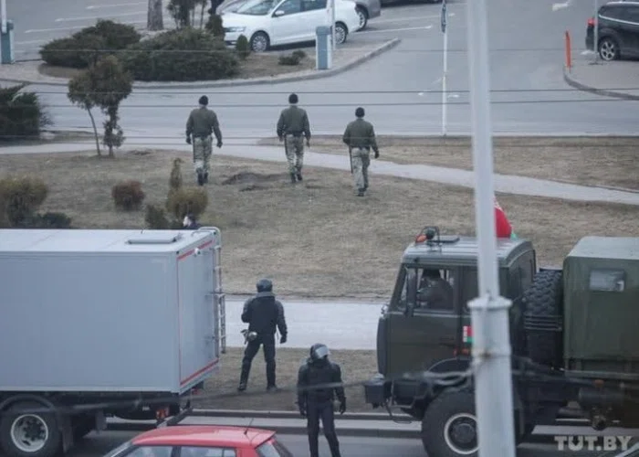 Журналистов, пытающихся запечатлеть происходящее, тут же хватает ОМОН. Некоторых прохожих в черные «бусы» затаскивают без видимых на то причин. Минчане сообщают, что военная техника стоит не только в центре Минска, но и в спальных районах. В самых людных районах Минска перекрывают движение. У некоторых станций метро начинаются зачистки. Парень в парке Горького в центре Минска стоит на краю парапета в окружении людей в балаклавах, готовясь прыгнуть в реку, лишь бы не попасть им в руки.