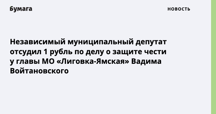 Независимый муниципальный депутат отсудил 1 рубль по делу о защите чести у главы МО «Лиговка-Ямская» Вадима Войтановского