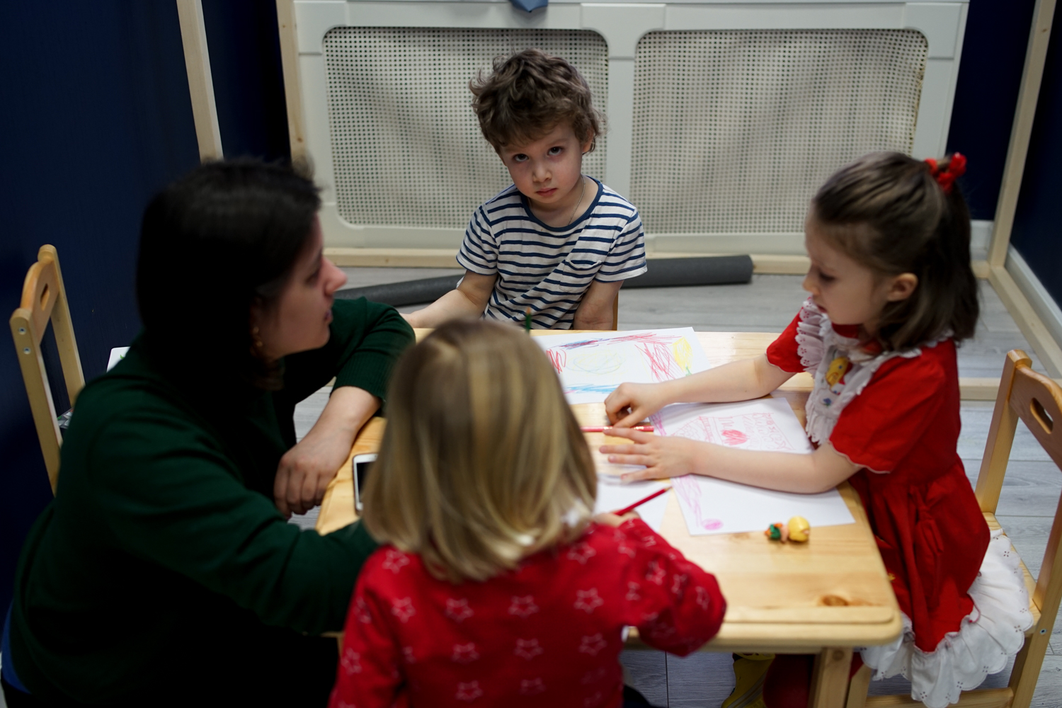 Дети могут задавать вопросы. Мы также проигрываем какие-то ситуации, помогаем найти контакт. Есть занятия со специалистами по сенсорной интеграции, по поведению и коммуникации, а также с преподавателями английского. Плюс у каждого ребенка есть индивидуальные занятия с логопедом.