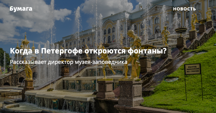 Кальницкая рассказала, что фонтаны заработают 24 апреля, а праздник фонтанов запланирован на 22 мая. Она добавила, что гостей ждет представление на Большом каскаде и торжество, посвященное юбилею фонтанов. Кроме того, Кальницкая отметила, что музей будет соблюдать все требования Роспотребнадзора во время массовых мероприятий.
