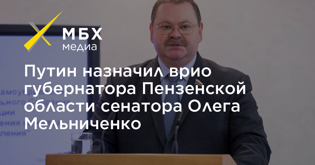 Владимир Путин назначил временно исполняющим обязанности губернатора Пензенской области Олега Мельниченко, до этого занимавшего должность сенатора от региона. Текст указа опубликовала пресс-служба Кремля.