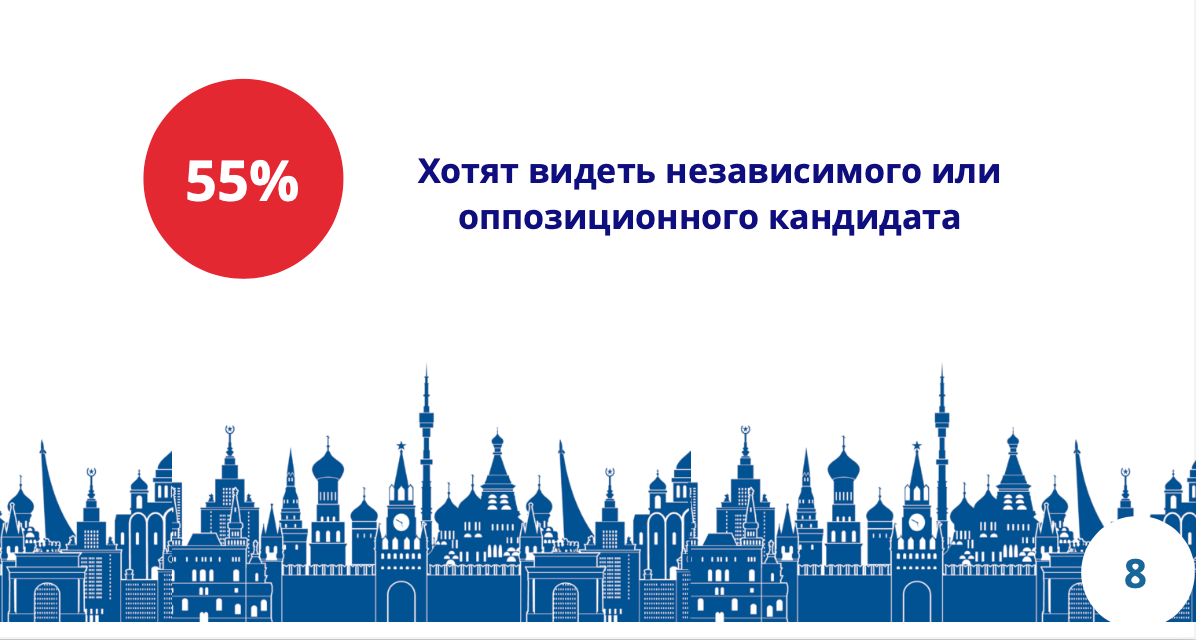 По данным опросов ВЦИОМ, на которые опирается стратегия, самый низкий рейтинг у партии — в Центральном округе Москвы, всего 15% (у «Яблока» там же он равен 12%). Проблемными для «Единой России» выглядят даже округа, которые можно отнести к рабочим окраинам. В Медведковском одномандатном округе рейтинг ЕР в сентябре 2020 года был равен 16% (у КПРФ — 13%), в Перовском и Бабушкинском округах — 18%. В более престижном Кунцевском округе за единороссов были готовы голосовать только 17% респондентов ВЦИОМ.