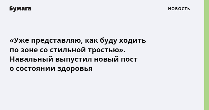 По словам Навального, проблемы со спиной дали осложнения — «целые участки ноги потеряли чувствительность». «Уже представляю, как буду ходить по зоне со стильной тростью», — пишет политик. Полный текст поста можно прочитать в инстаграме Навального.