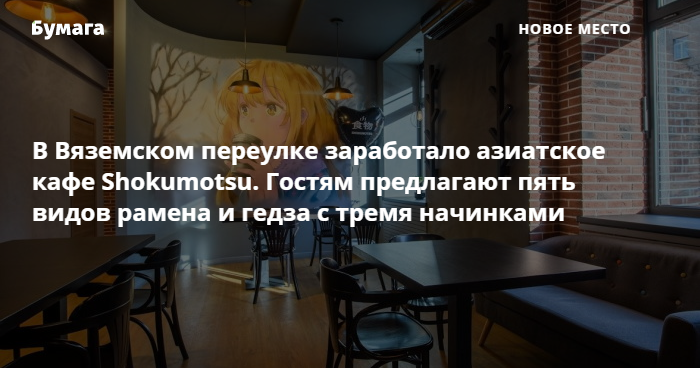 В Вяземском переулке начало работу азиатское кафе Shokumotsu
