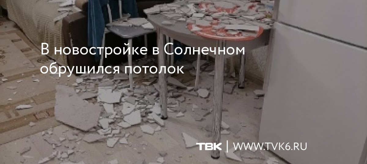 Все произошло в доме по адресу ул. Соколовская, 70. Толстый слой штукатурки обрушился с потолка в жилой комнате: куски покрытия попали на мебель и пол.