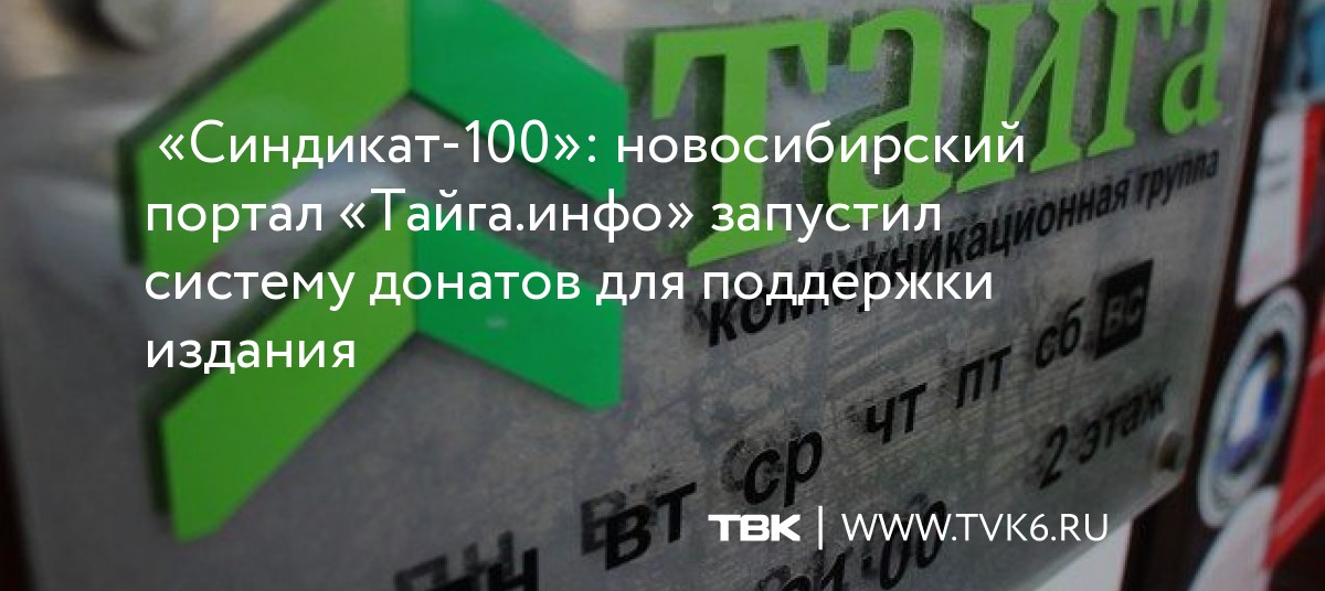 «Синдикат-100»: новосибирский портал «Тайга.инфо» запустил систему донатов для поддержки издания