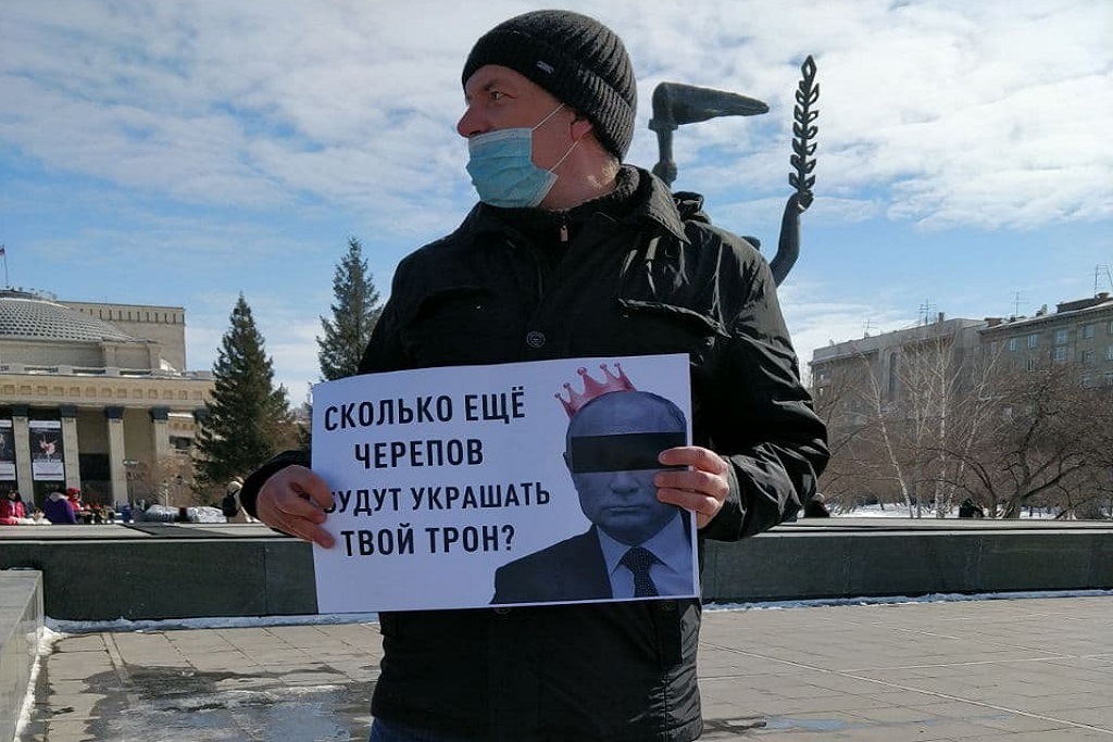 На площади Ленина и у мэрии Новосибирска днем 27 марта прошли сразу семь одиночных пикетов одновременно, сообщает тг-канал «Гражданские репортеры Сибири».