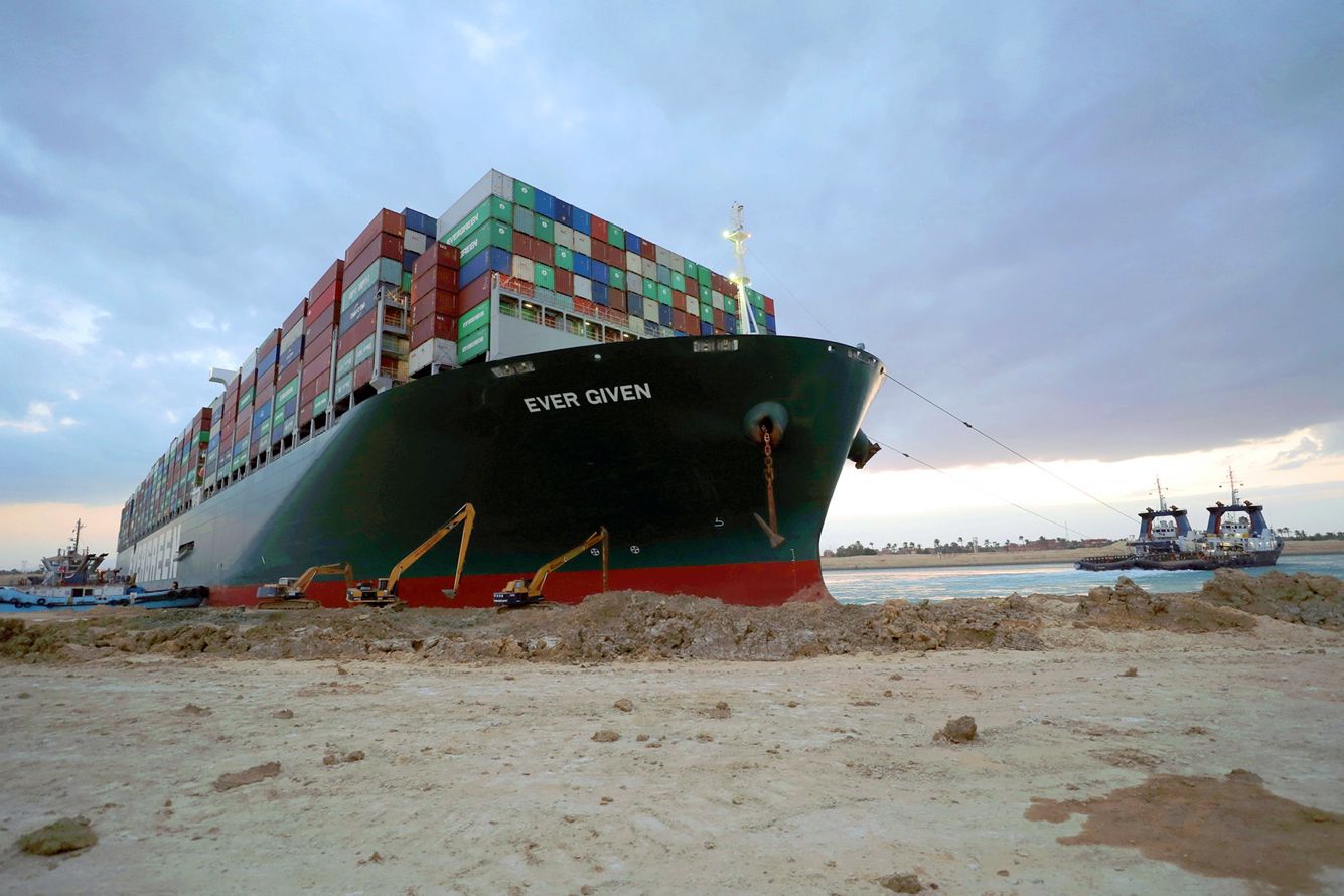 Судно «Эвер Гивен» не могут снять с мели пятый день подряд. Президент Египта дал указание подготовиться к его разгрузке