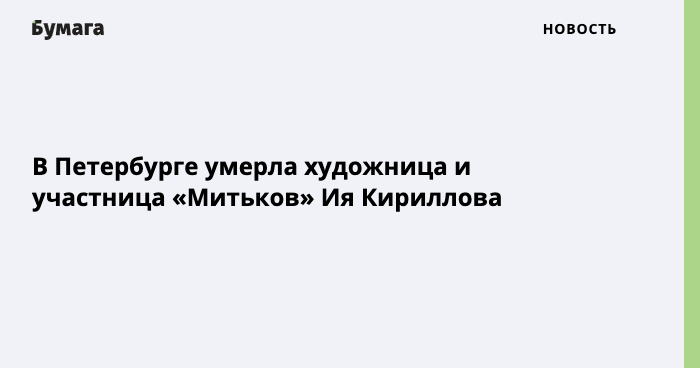 В Петербурге 21 марта умерла художница Ия Кириллова. Об этом сообщает государственный музей «Царскосельская коллекция».