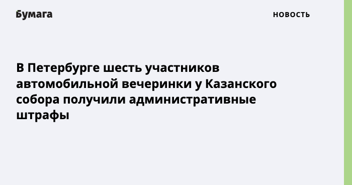 В Петербурге шесть участников автомобильной вечеринки у Казанского собора, которая прошла в ночь на 28 марта, получили административные штрафы. Об этом «Бумаге» сообщили в ГУ МВД по городу.