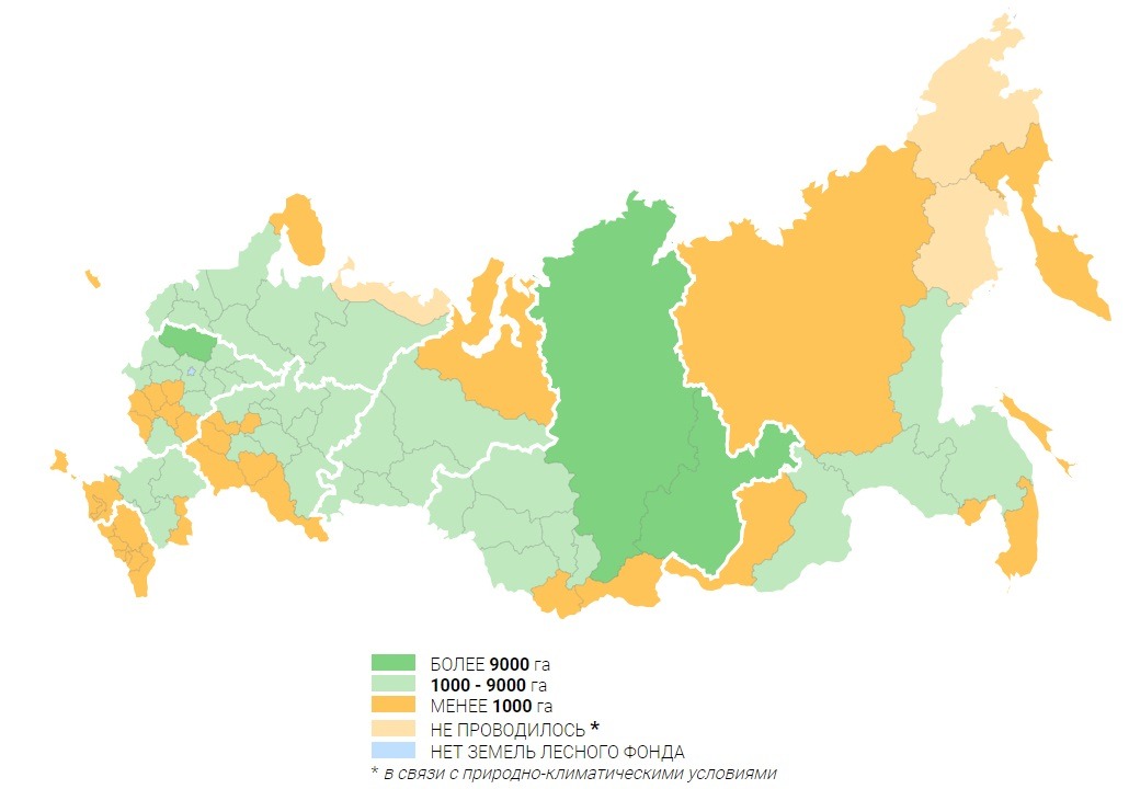 Рейтинг - 2020 в очередной раз возглавила Иркутская область (15394 гектара), на второе место поднялся Красноярский край (10713 гектаров), в тройке осталась Тверская область (10036 гектаров).