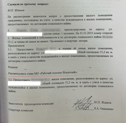Адвокат Николаенко заметил нестыковки в материалах дела. Так, по версии следствия, Юрий Жданов предоставил жилое помещение местной жительнице, зная, что она уже получала субсидию, и на заседании комиссии больше никто не присутствовал. Однако сам Жданов утверждает, что не знал, что субсидия уже выдавалась. Кроме того, жилищная комиссия не выдает квартиру, а лишь принимает решение рекомендательного характера. А участники заседания комиссии вспомнили даже фразу «Мне бы такую же квартиру, я была бы рада» от участницы заседания жилищной комиссии, которая дает показания, что ее там не было.