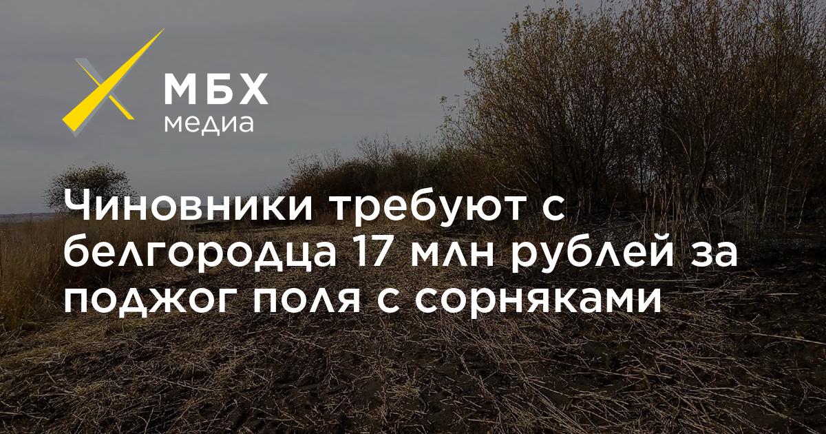 Чиновники требуют с белгородца 17 млн рублей за поджог поля с сорняками