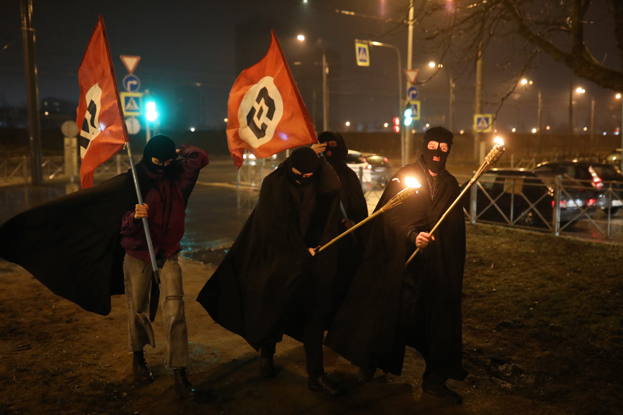 В Петербурге задержали участников факельного шествия, которые несли флаги с логотипом Роскомнадзора