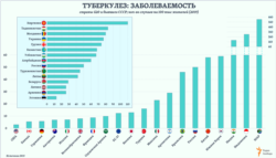 Ежегодно в мире заболевают туберкулезом примерно 10 млн человек, отмечает ВОЗ, причем две трети всех новых случаев приходится всего на 8 стран: Индию, Индонезию, Китай, Филиппины, Пакистан, Нигерию, Бангладеш и ЮАР. Четыре из них входят в G20. Показатель России, судя по данным ВОЗ, пока в 4 раза выше среднего для 27 стран Европейского союза и больше, чем у любой из них: